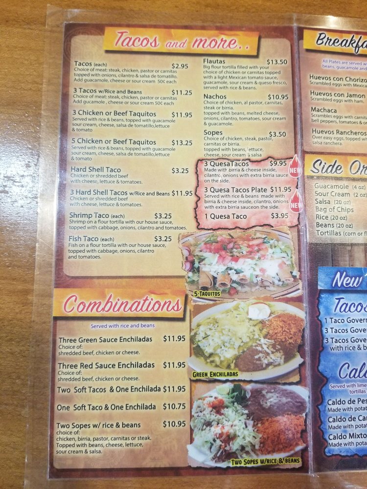 “ Came here on a Friday early evening it's kind of hidden but I use to go there when it was another food place so I found it. You order up front then sit and they bring the food to you. We got beer , chips n salsa and the chips were hot and tasted perfect. The guys who work there are very attentive. I like that! The food was really good! I ordered the chicken fajitas and a torta de birria. I also ordered food to go chicken enchiladas and a taco al pastor. It was all tasty I found a new spot to come to. Inside was cozy and busy. People eating in and people coming for take out. It has a lot of business so you know it's good. It had a good vibe inside and great Mexican food! We had such a good time and enjoyed our food. We will be coming back again. ”